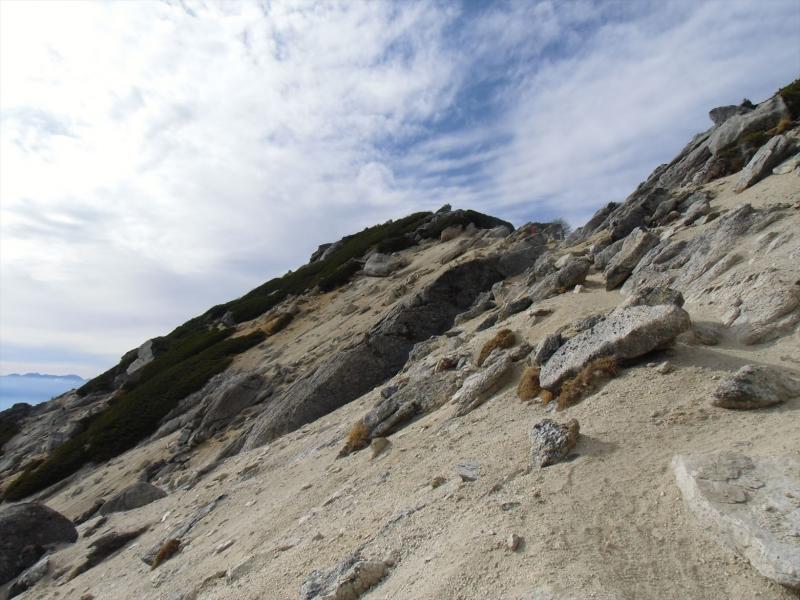 駒津峰からは甲斐駒の白い岩・砂がもう目の前。