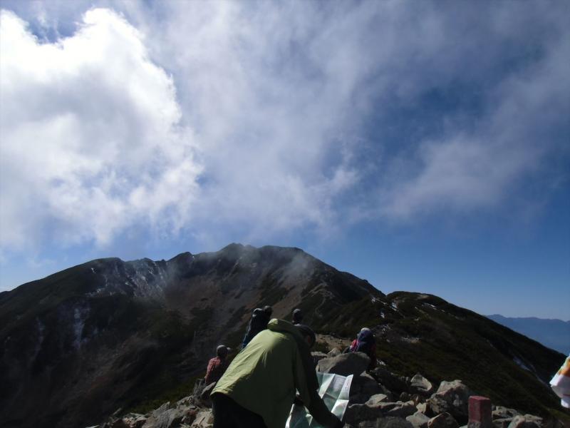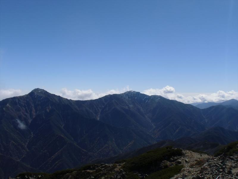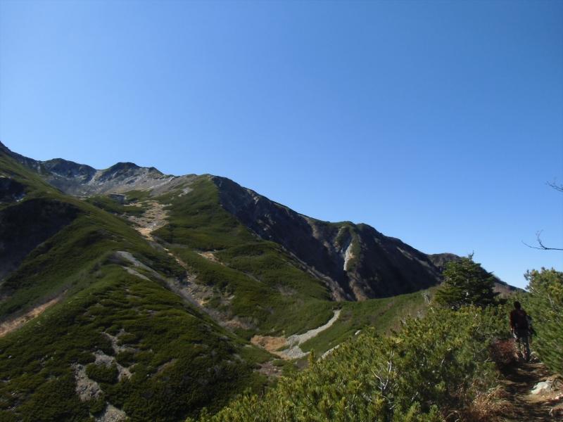 登山道が歩きやすくて、甲斐駒とは対照的な岩の少ない、優しい山容。