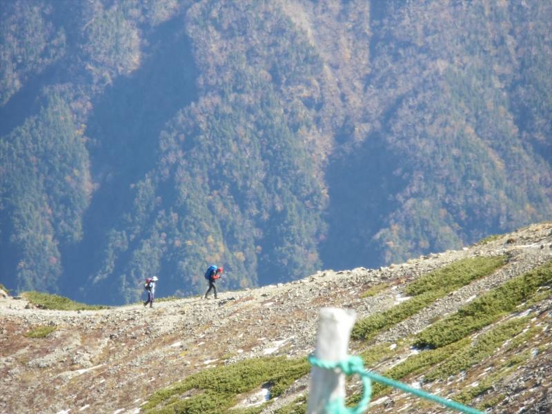 仙丈~小仙丈稜線の日の当たりにくいところ雪あり、固まっていたりもしました。