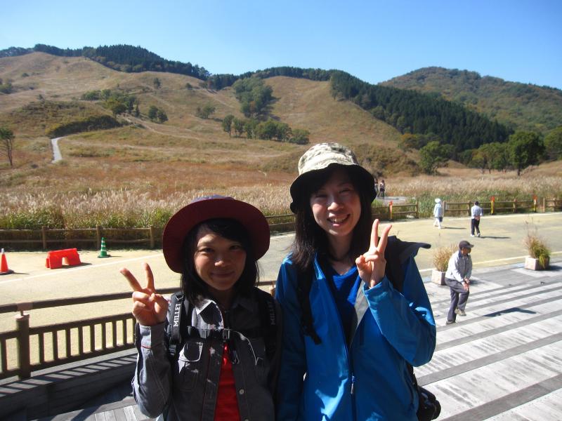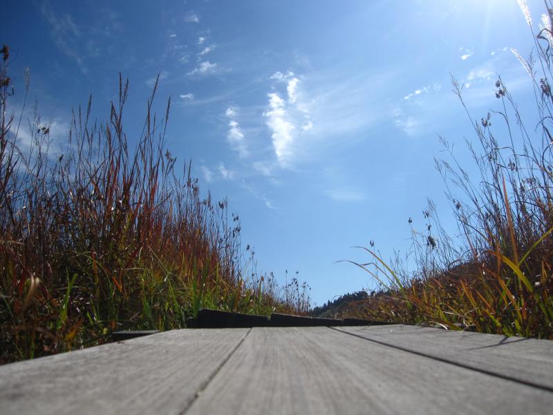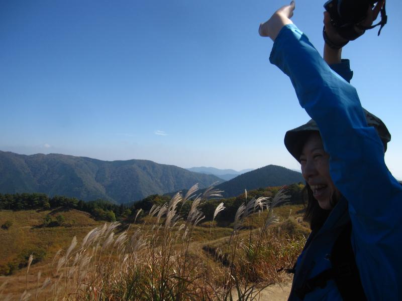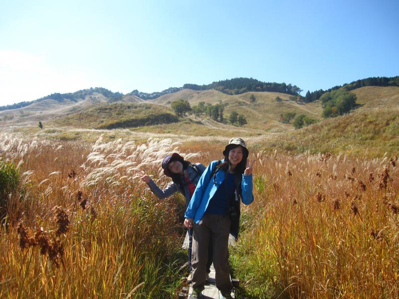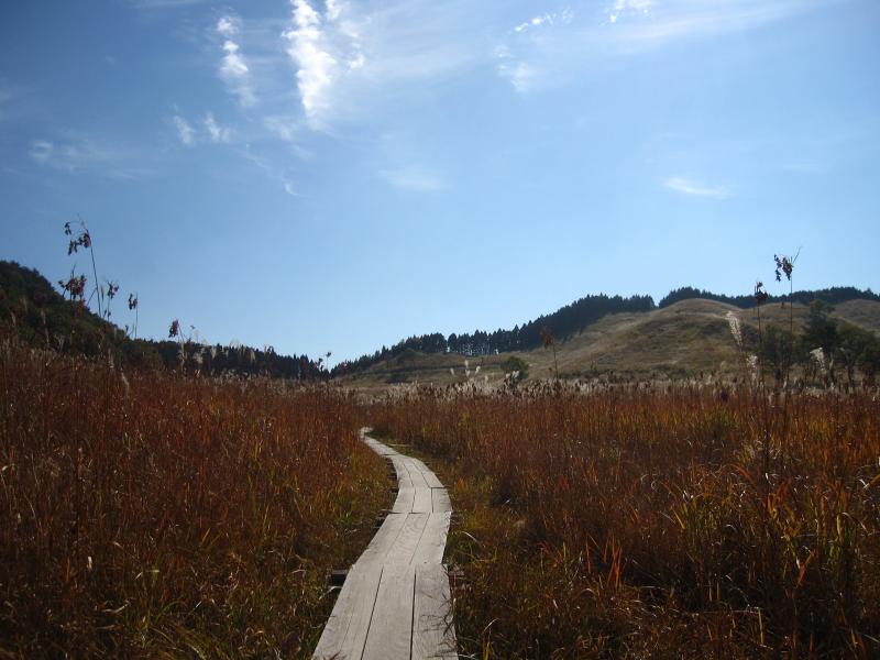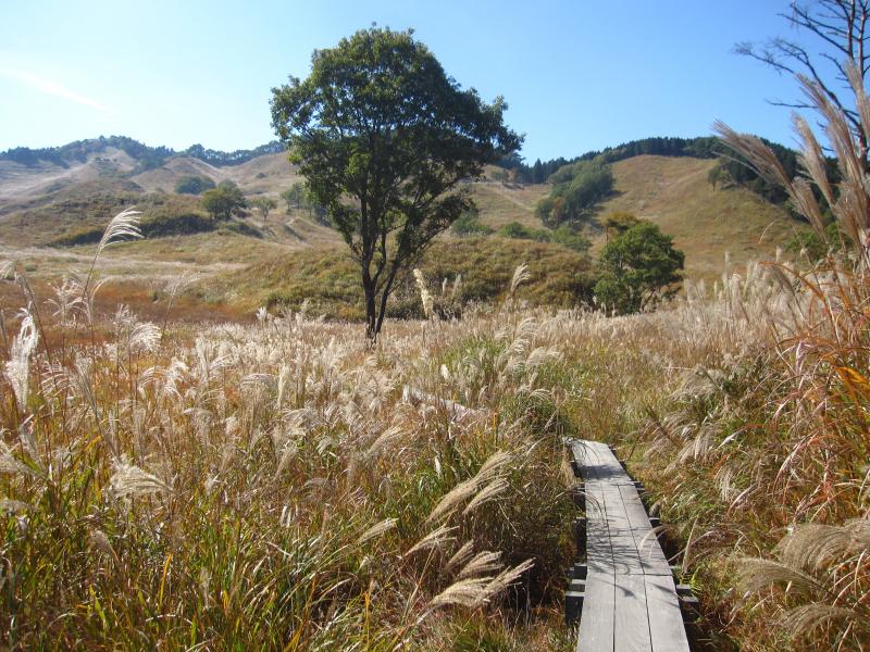 木道と、ススキと、高原全体がきれいに見渡せて、とってもいい眺めです。