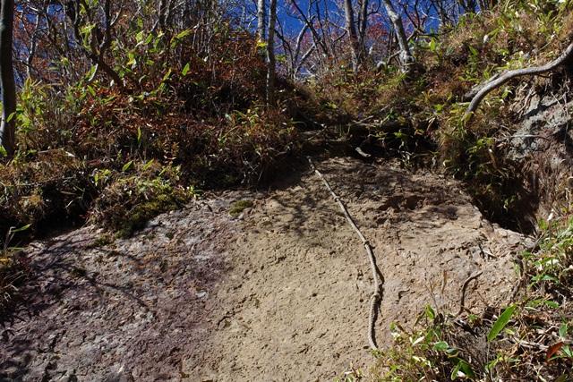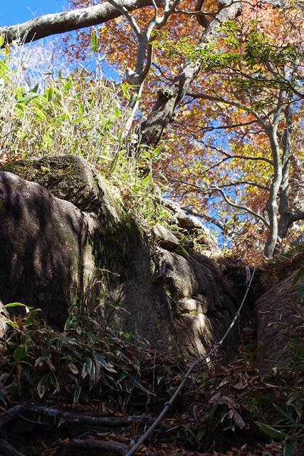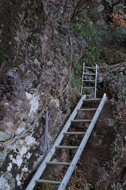 祖母山直下は、ハシゴやロープがかけてあり岩を上ります。三点確保の技術も必要です。