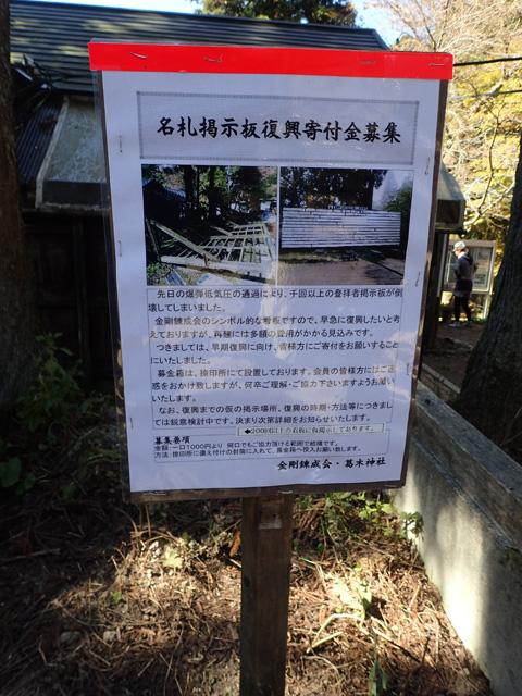 そして残念なニュースが一つ。山頂広場近くにある金剛山のシンボルの一つでもある回数登山者のネームプレートが先日の爆弾低気圧の影響で倒れていました。