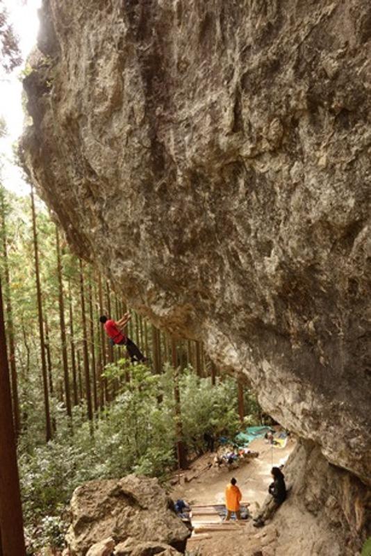 中でも、ハイカラ岩は【スペクテーター 5.14d】をはじめとして高グレードなルートが揃う鬼岩と並び鳳来を代表する岩です。