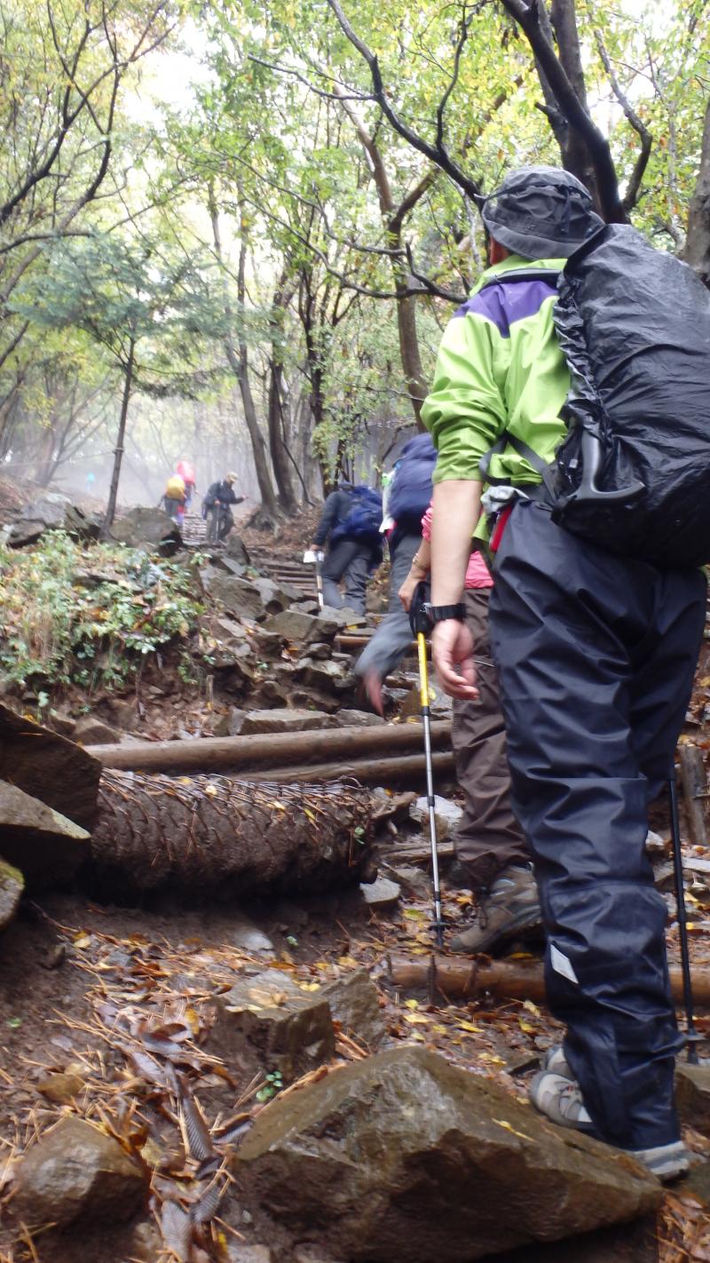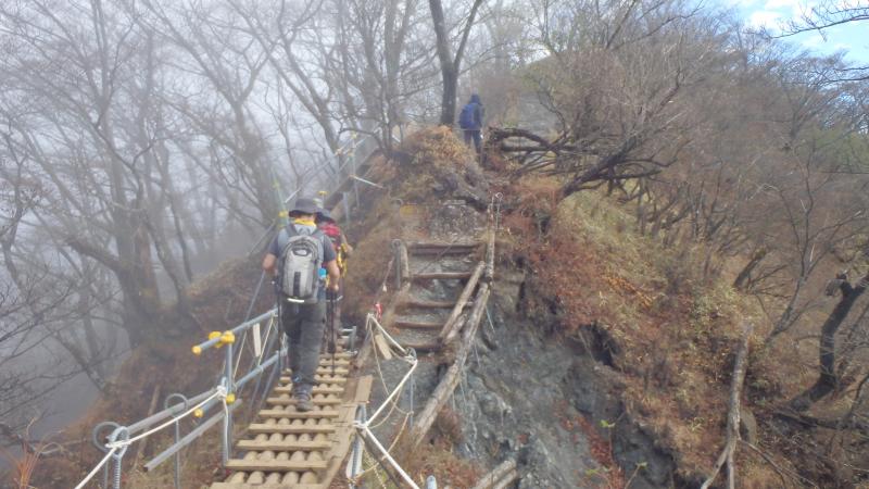 登山道は良く踏まれており、木道や階段できれいに整備されているが、木の上は滑る個所もあるので注意。
