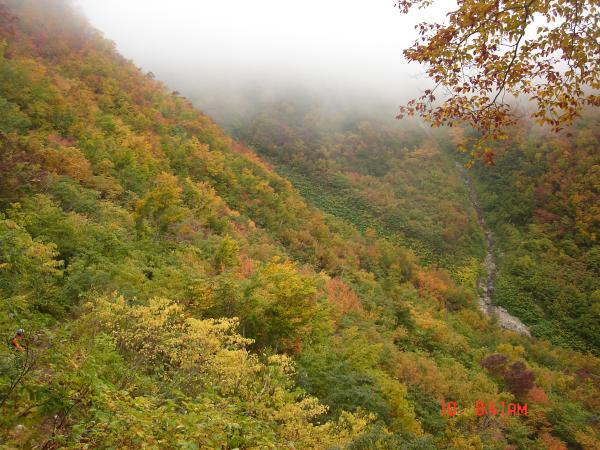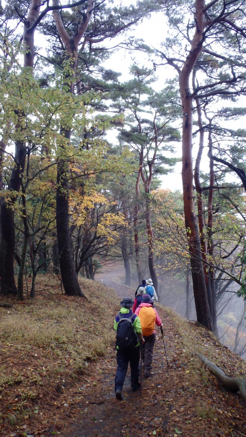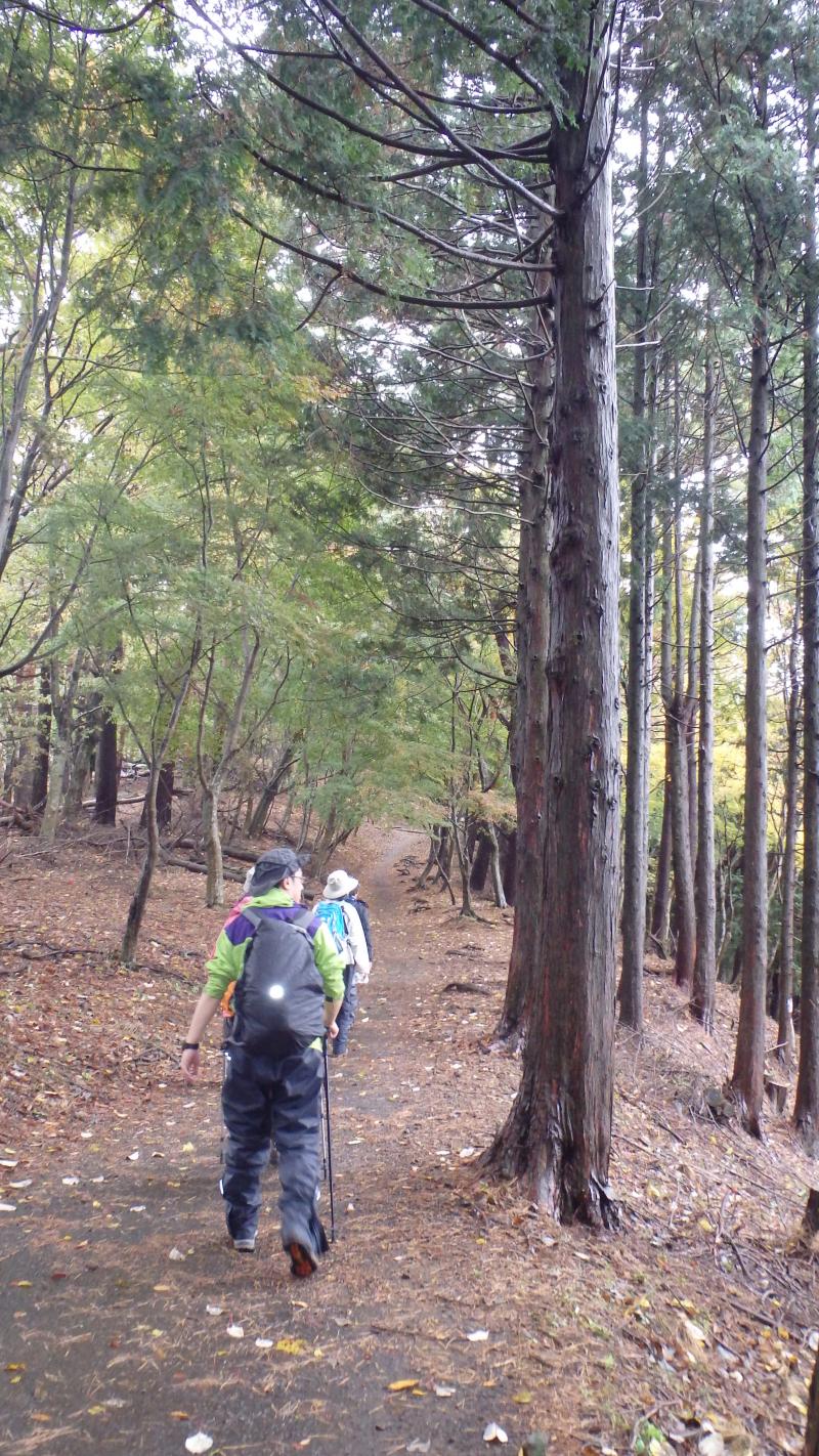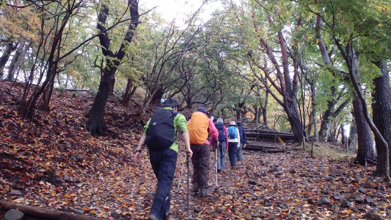紅葉も終盤で登山道に積もった落ち葉を踏みしめながら登り、中腹のもみじが所々色づいており綺麗でした。