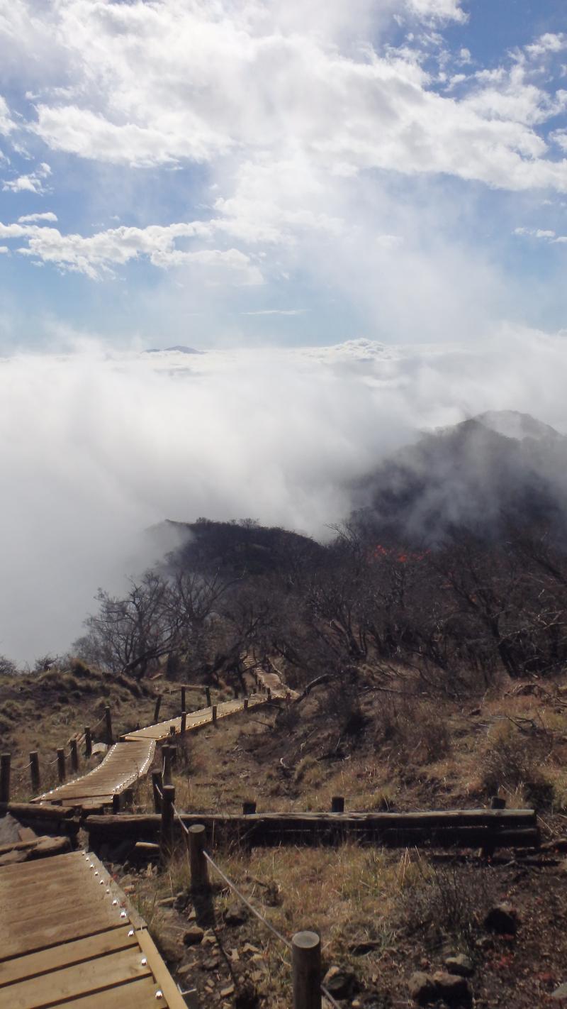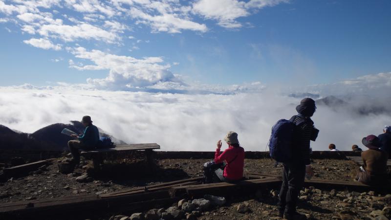 登り始めはあいにくの天気で小雨も降っていましたが、徐々に天気は回復し、山頂では見事な雲海を見る事ができました。