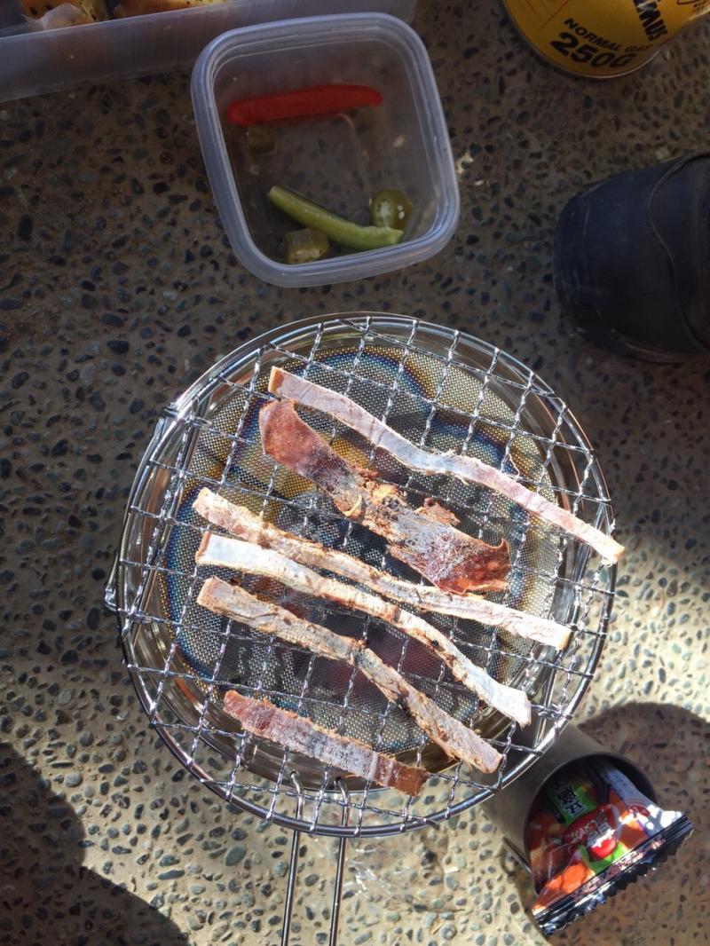 〆で外せないのが網焼きでスルメ!こちら最近購入したmyグッズですが、大変気に入っております。スルメやカルパスを炙ると美味しさ倍増です。可愛い女子の方にお勧めなのはカマンベールチーズを丸ごと乗せて上の部分をくり抜いてお手軽チーズフォンデュなんかもできちゃいますよ♪