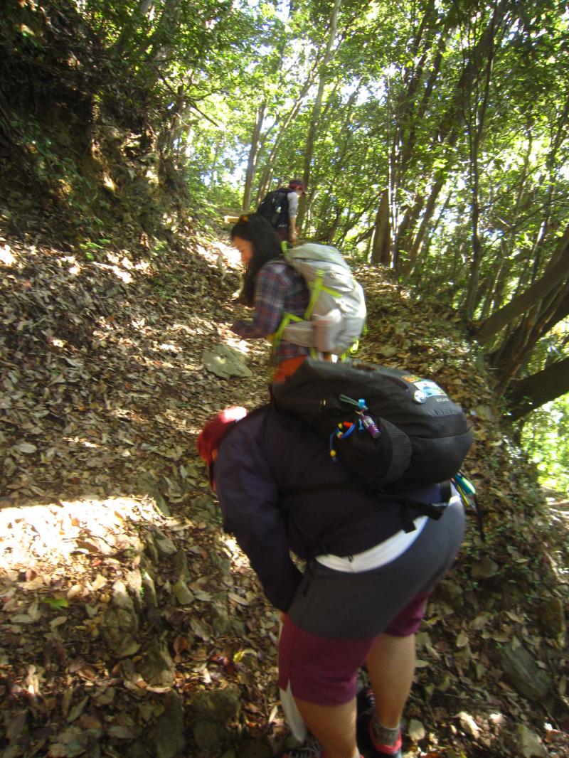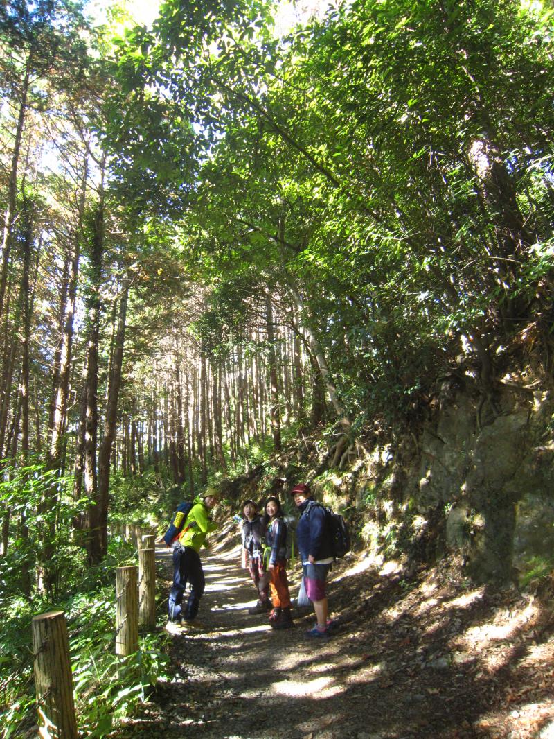 初めは少々傾斜のある道をクネクネと100mぐらい歩きます。葉の間から射し込む木漏れ日が大変気持ち良く、早起きは三文の得とはこのことだなぁと実感。この道はドングリが沢山落ちており、私たちは童心帰ってひたすらドングリを拾いました。今回の案内人によると、ドングリを100個集めるとドングリの苗と交換してくれるという「どんぐり銀行」というものがあるらしいです。メンバー全員でどんぐり拾いに夢中になり、今回は3株分くらいは集めたと思います。一歩進むごとに様々な形のドングリがあるので楽しくてなかなか前に進めません。