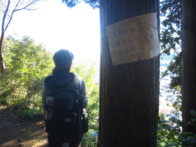 左手には街並みを見下ろすことができます。展望がとてもよく、スカイツリーや近くの川苔山なども見えました。今回は見つけられませんでしたが富士山も見えるようです。