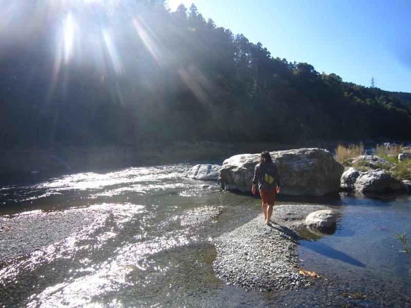 山も好きだけど、海や川も好き!!というメンバーの一人はおもむろに靴と靴下を脱ぎ始め、裸足で川へ駆けていきました。冷たくて気持ちよさそうでした。私は河原で寝転がり、太陽の暖かさで睡魔に襲われて歩きたくなくなりました。