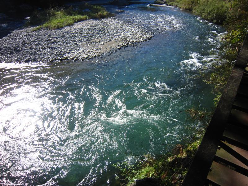 川を覗くと稚魚が沢山泳いでいました。ここではイワナやニジマスが釣れるようです。