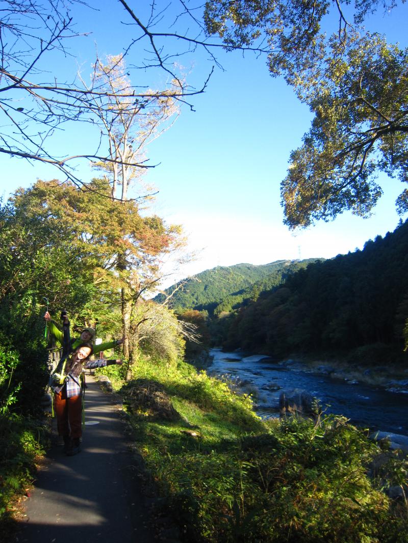 先程まで山歩きをしたと思っていたら今度は川沿い歩き。両方楽しめるなんて素敵なコースなのでしょうか。案内人のセンスに皆感激。