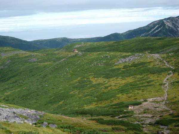 新穂高温泉(10:10)→わさび平小屋(11:30,休憩)→鏡平山荘(15:20)→双六小屋(18:00)[テント泊]
