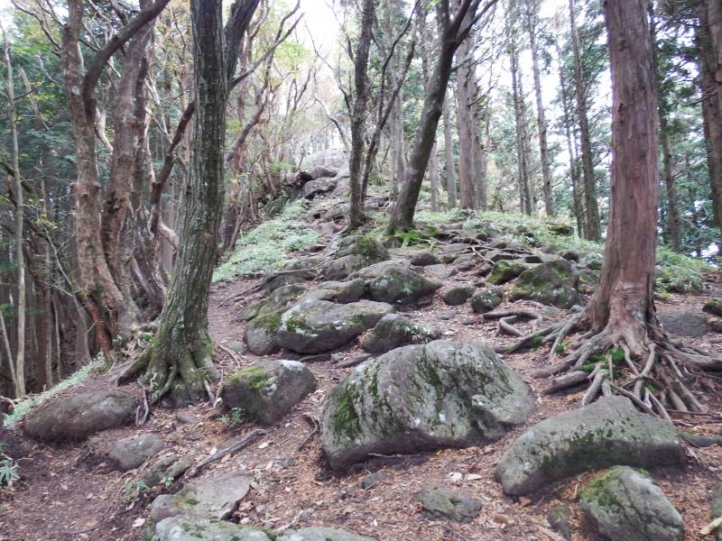 稜線に出て、しばらく歩くとゴロゴロした岩が多くなります。