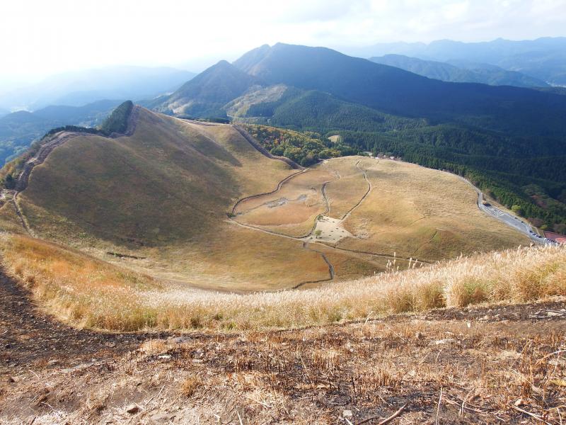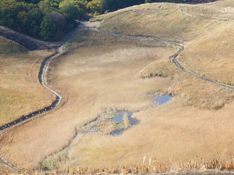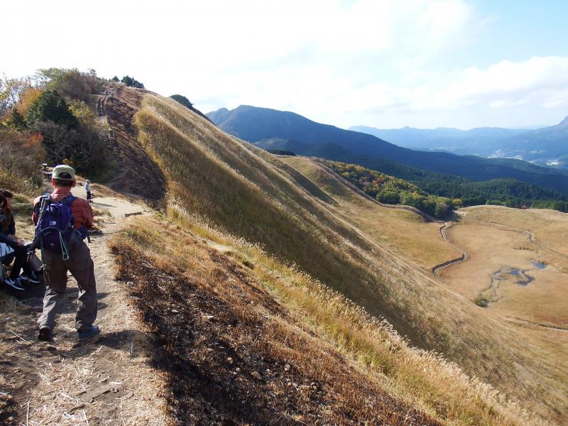 稜線に出ると、ススキの原っぱが一望できます。