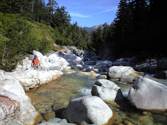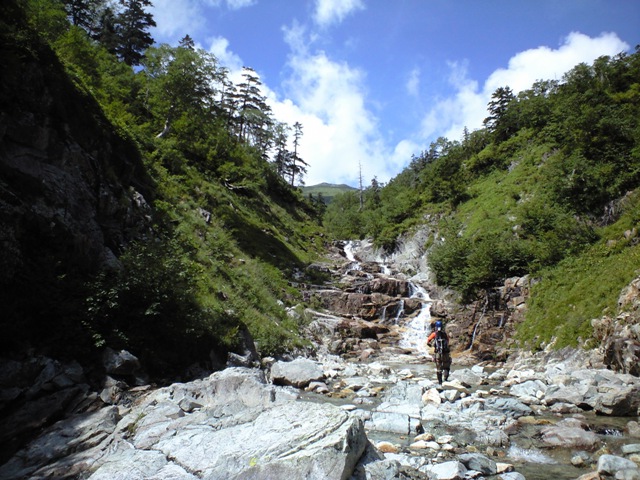 明るい景観で綺麗な滑滝などが続く沢なので、是非一度は行ってみたい場所です。稜線に突き上げるというのも魅力です。