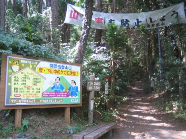 - 開聞山麓ふれあい公園から歩いて2合目にあたる所が登山口のスタート。登山道自体は整備が行き届いており歩きやすい。延々と樹林帯の中を登り続けるので、水分等の補給はこまめに行ってください。山頂は絶景ですよ。