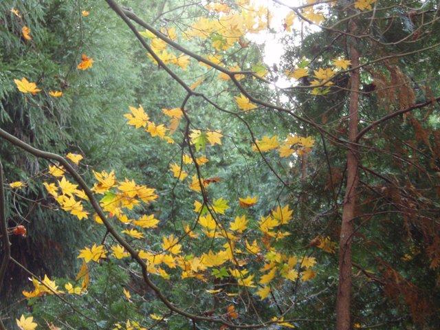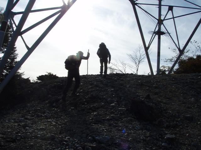山頂は風が強い上に大変冷たいので、風のない鉄塔下まで戻り食事後に、同ルートで下山しました。山中の紅葉は大半が終わっていましたが、山麓は紅葉が見頃を迎えていました。