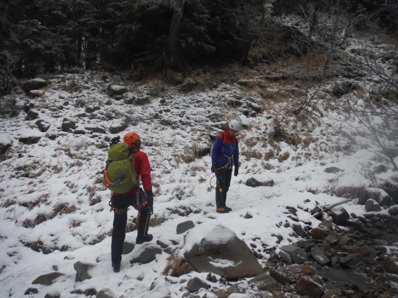 - ■裏同心ルンゼまでのアプローチは積雪状況によります。今シーズンは、現時点まで降雪が少なく、夏道を歩くスピードでアプローチできましたが、今後は状況によって変化します。