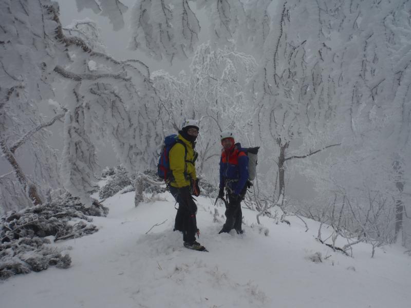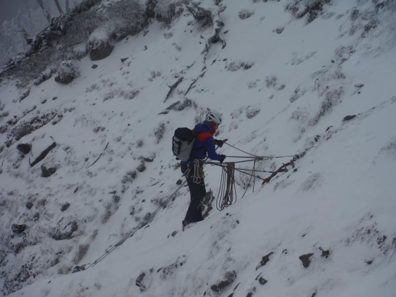 最後の大同心基部までは、ルンゼに入るか雪壁を上がるか迷いましたが、雪壁を上がるほうがトレーニングになると思いそちらのルートを選択。