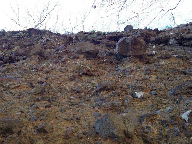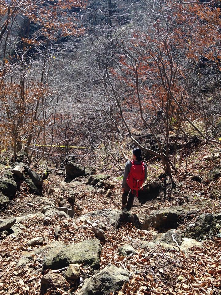 下山時に使用したタルワキ沢コースは、足元も両サイドの岩壁ももろい岩ばかりです。