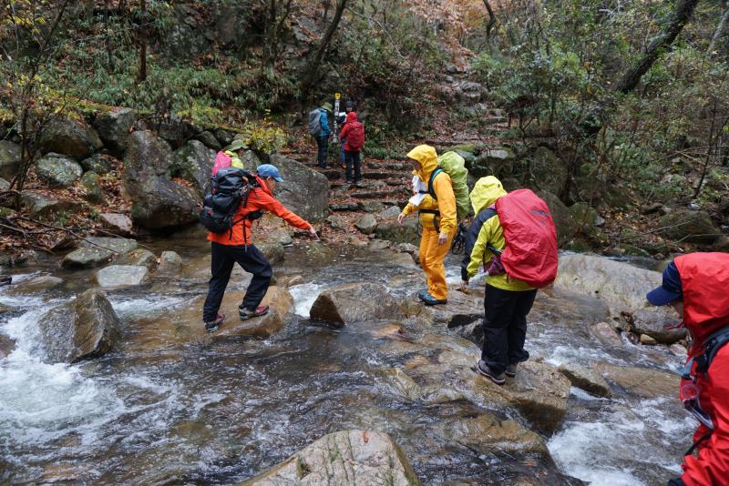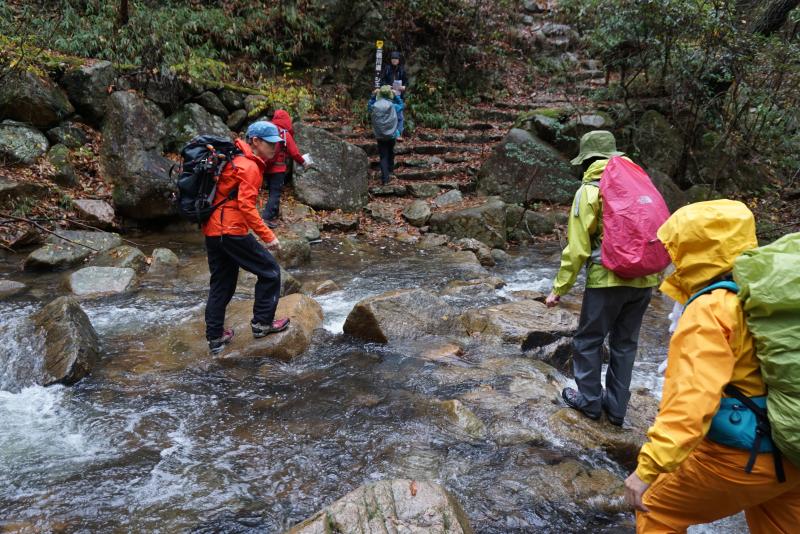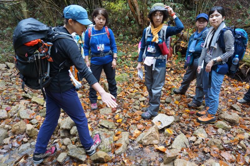夜中からの雨で沢が増水しており、思っていたよりアドベンチャーになりましたが、皆さんワーキャーと楽しそうに歩かれていたのが印象的です。