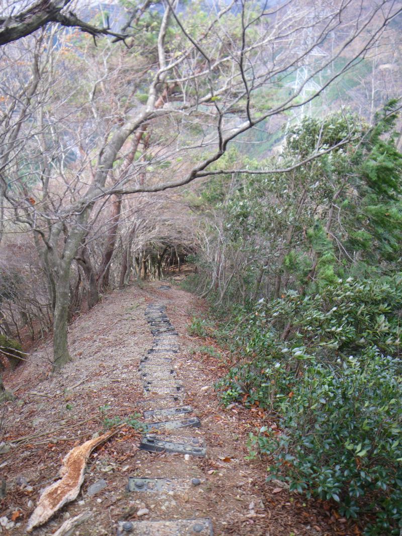 ③西北尾根の前半は送電線巡視路を歩きますので、黒い階段の道を歩きます