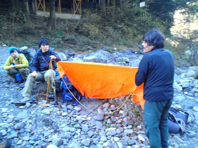 好日山荘登山学校実技、スキルアップコースの、ツェルトビバークトレーニングに参加させていただきました。