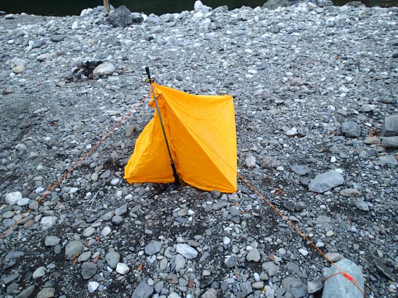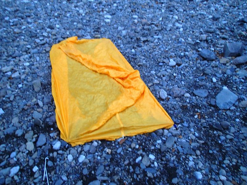 かぶって使うタイプのツェルトは、やはり横になって寝るにはやや狭い。