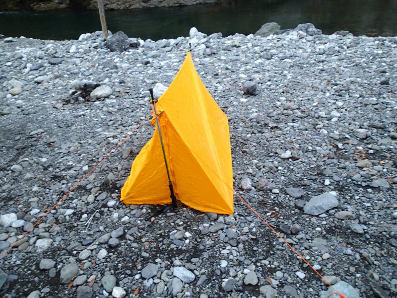 ③完成。ペグも打てて、石も多い。条件が良いのでキレイにたてられました。