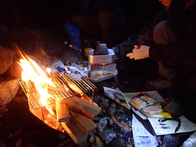 夜はかなり冷え込み、氷点下まで下がった模様。ビバークトレーニングが目的とはいえ、人によっては眠れない夜を過ごすことになり、疲労困憊の人も。やはり体験とはいえ横になれるツェルト、寝袋等寝具もしっかりしたものを用意したいところでしょうか。