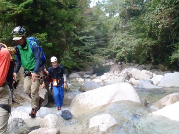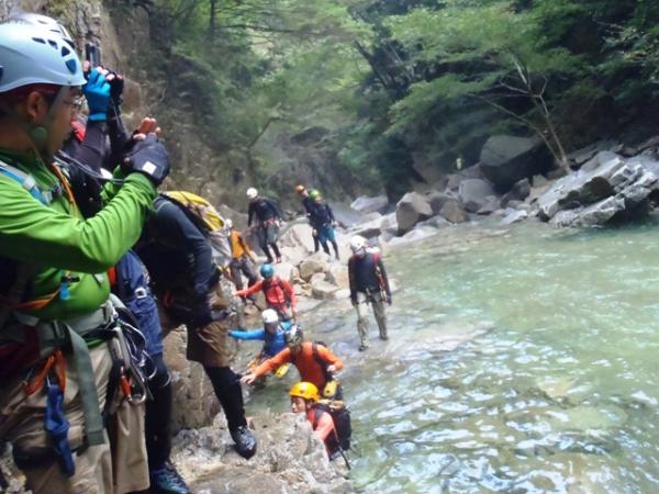 元越谷はうすいグリーン色の美しい沢で、ナメの廊下が続き、景色を堪能しながら歩けます。