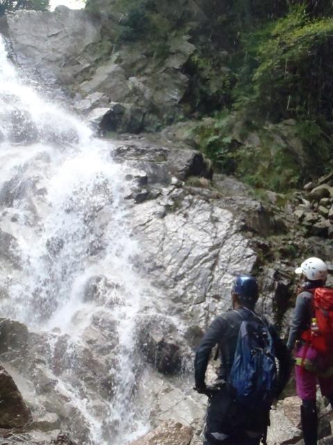 - 元越谷入渓点~(90分)~元越大滝~(150分)~仏谷分岐~(林道60分)~駐車場