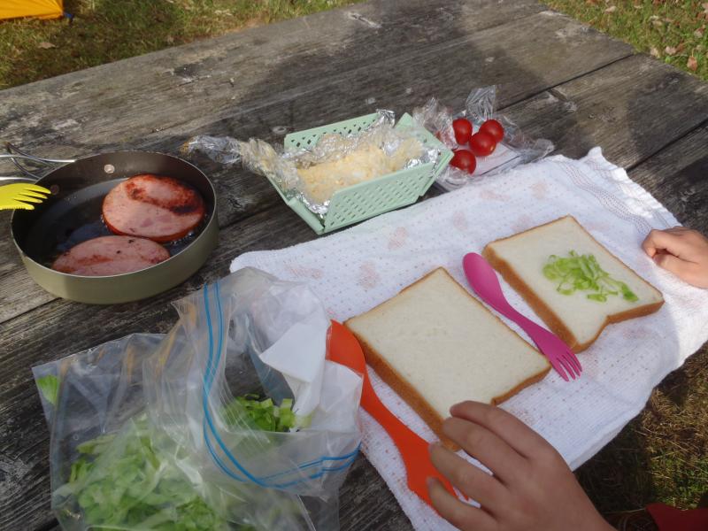 他にもどんぐり見つけて、葉っぱとどんぐりでサンドイッチ作ったり、風で舞う落ち葉に雨みたいと大興奮したり、発見がいっぱいでした。