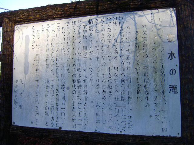 羊山公園までは車道を歩きます。途中に大正時代の歌人若山牧水にゆかりのある、牧水の滝がありました。