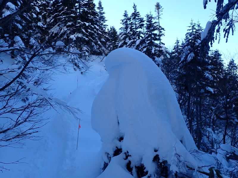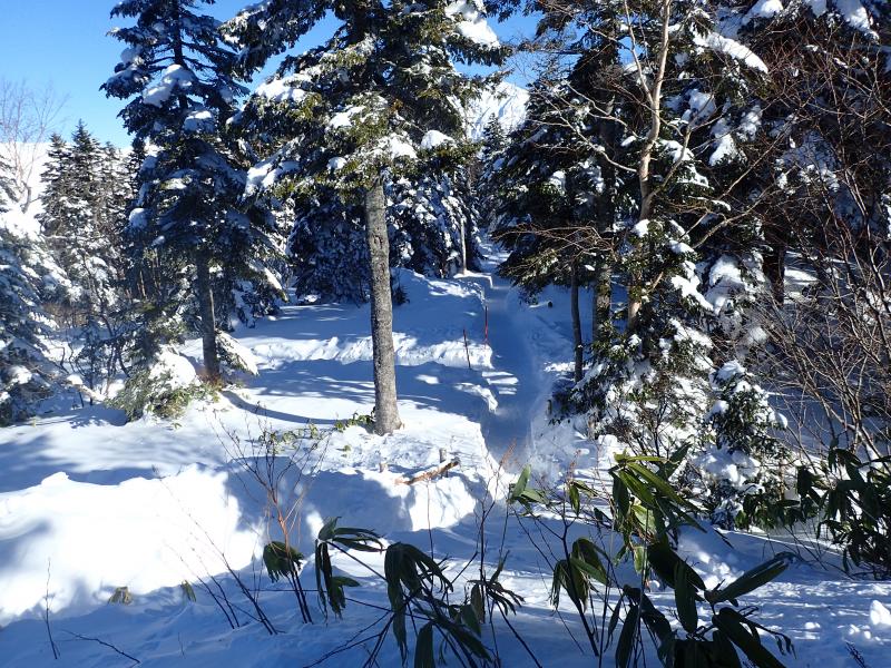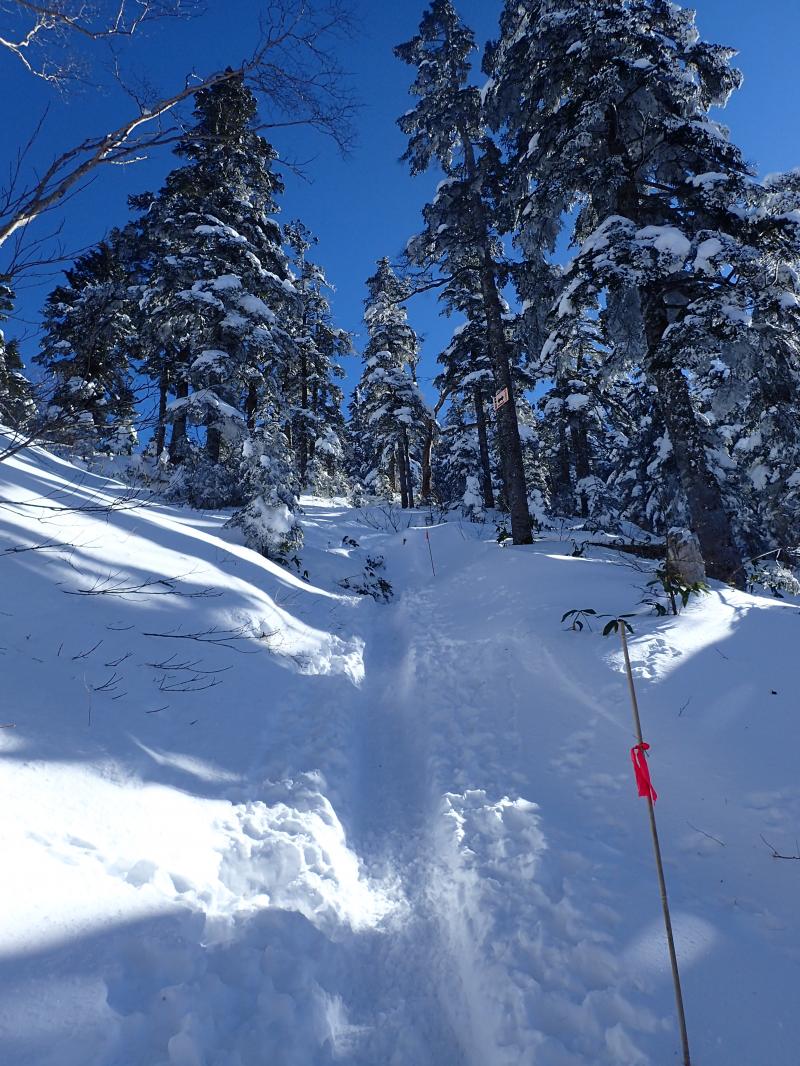 前日の日曜も天気が良く、登山者が多かったようで、トレースはくっきりはっきり付いていました。