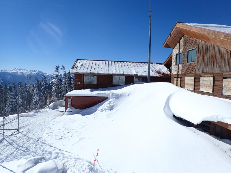 好天に恵まれ、西穂山荘までは気持ち良いスノーハイキング。