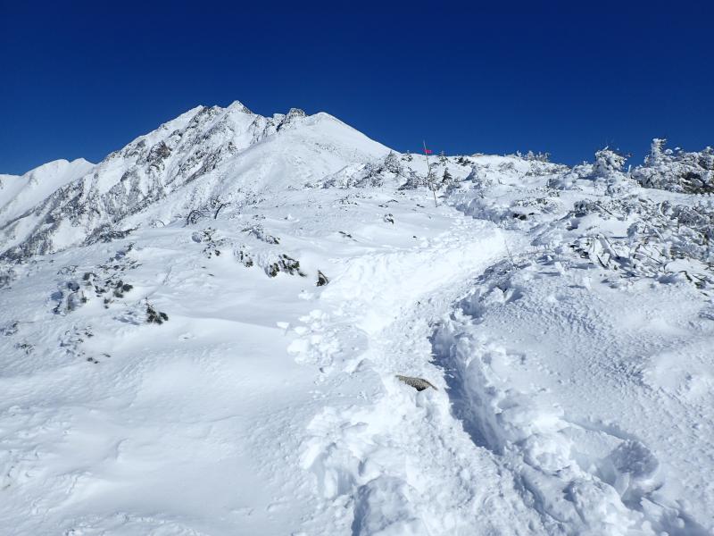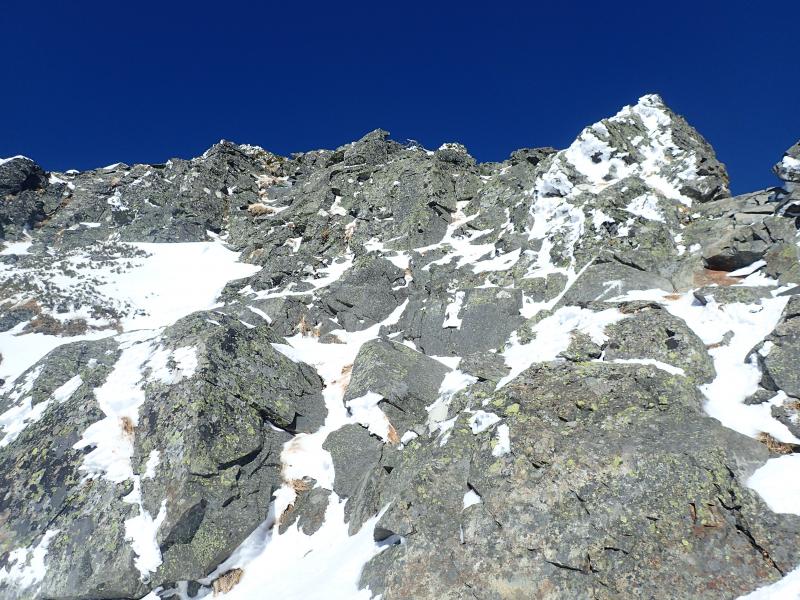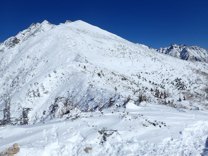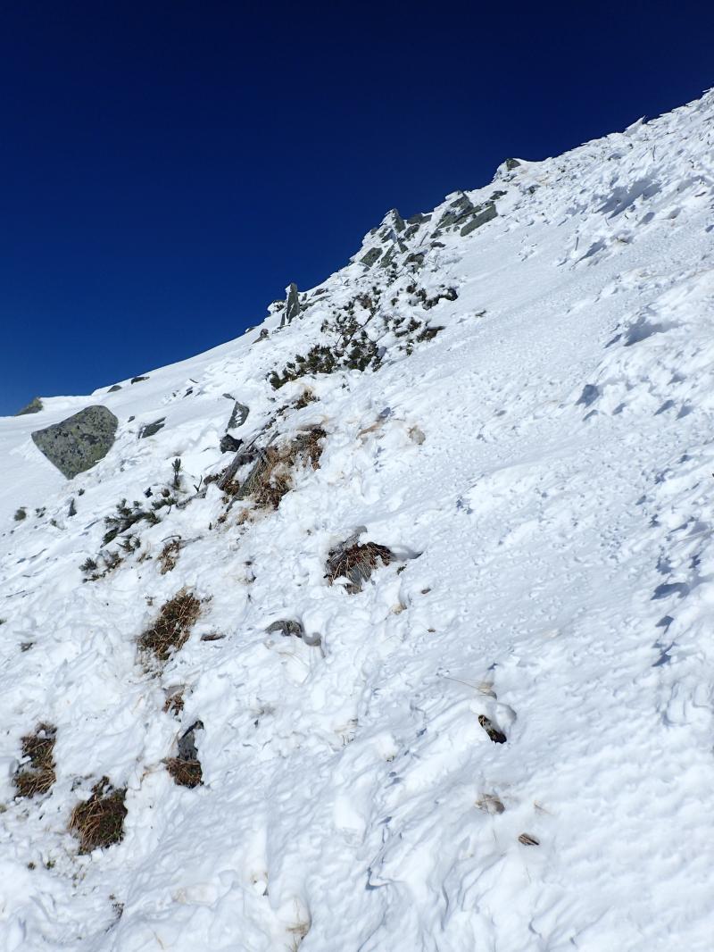 稜線上の雪はまだ薄く、独標周辺はかなり岩が露出している。