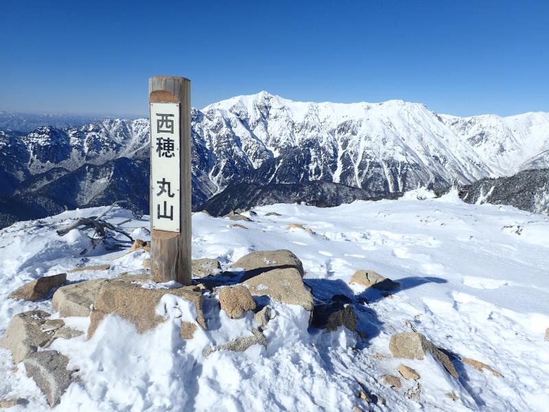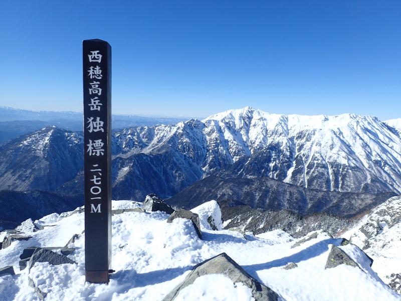 西穂独標は雪山の入門ルートとして有名ですが、今年はまだ雪が少ないせいか露出した岩峰に雪が薄ら付いている状態で、予想よりも大分スリリングでした。