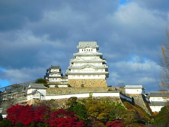 真っ赤な紅葉と白いお城のコントラストが素敵でした。