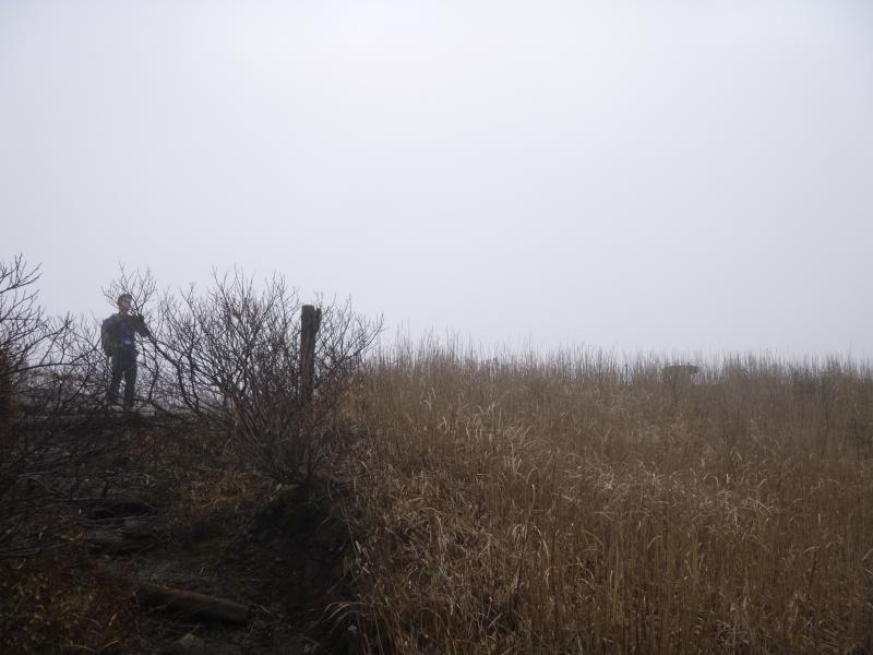 12月だというのにまったく雪が無く 表題の通り晩秋でした。森の中を登っていくと突然男三瓶山の開けた山頂に着きます。天気が良ければ360度の展望を楽しめます。天気が悪ければ避難小屋を利用できます。男三瓶山の下りは急で手を使うこともあります。