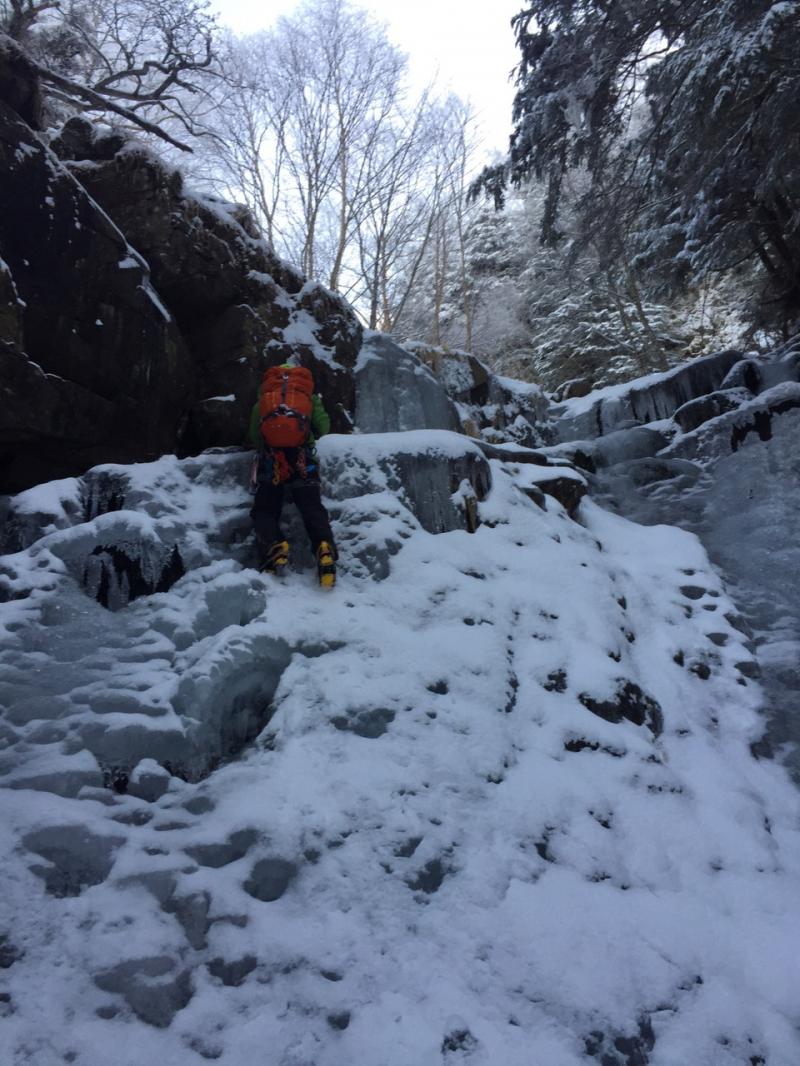 雪が少ないのを考えてアイスも交えたルートを計画しました。