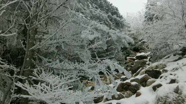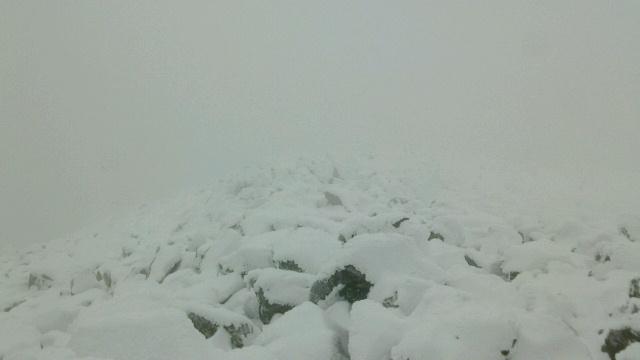 霧氷のトンネルを抜けると一気に視界が開けまもなく山頂です。