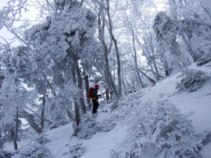 ※頂仙岳の巻き道である高崎横手が夏道となるが、冬場はトラバースすると少し危険。