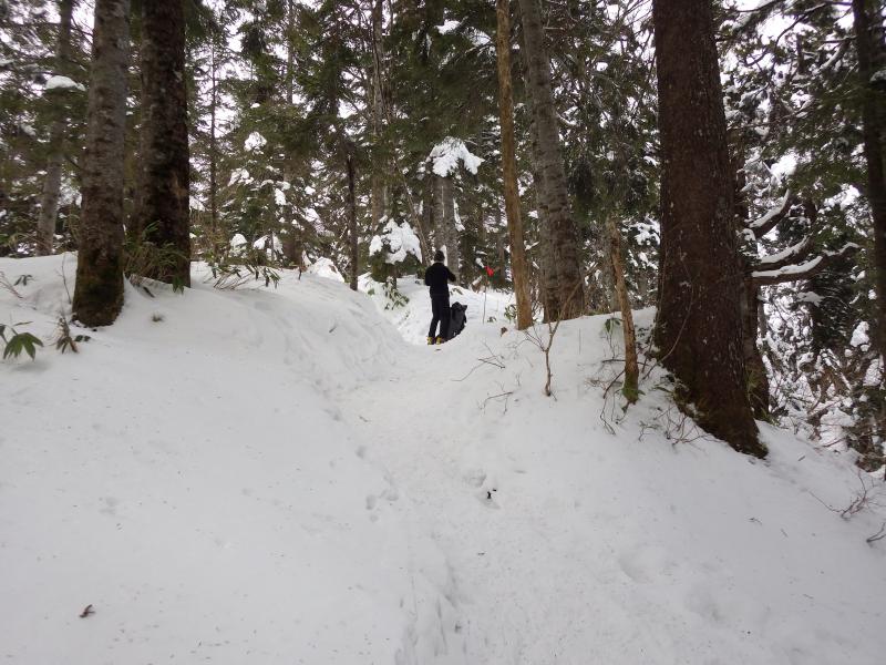 新雪は無く、トレースが西穂山荘まで続く、10本爪アイゼンが有ると歩き易い。