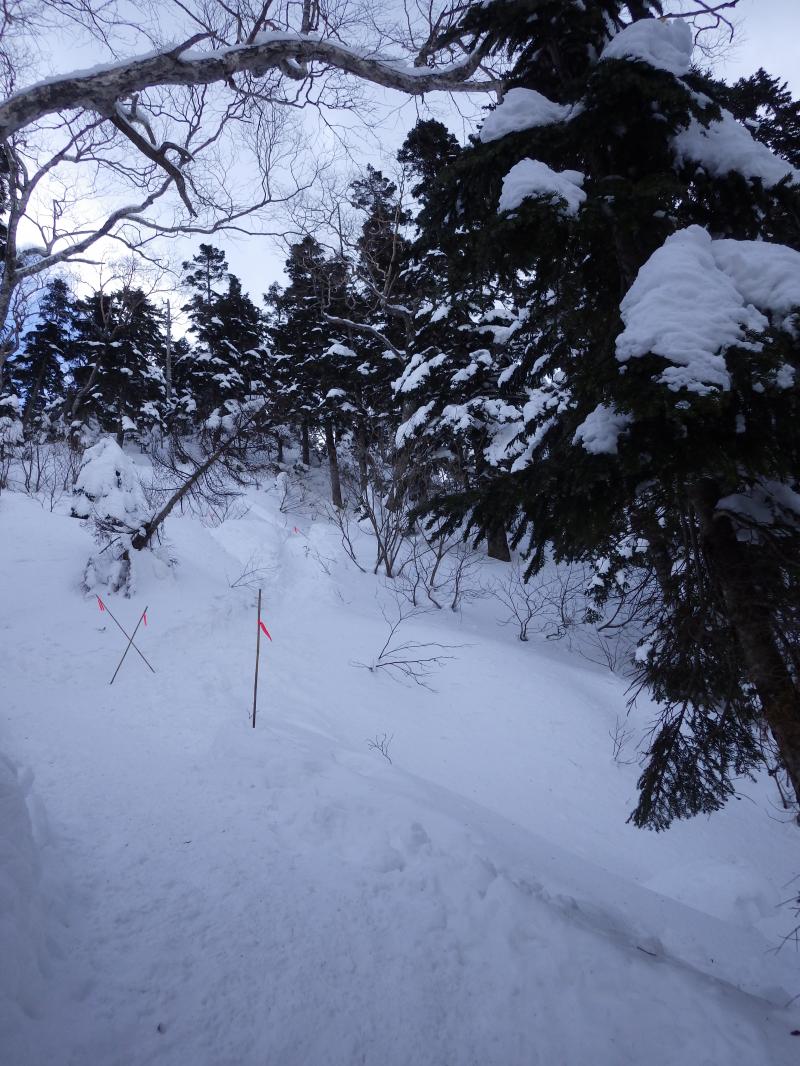 途中までストックで行き、ピッケルに持ち替えた方が無難。