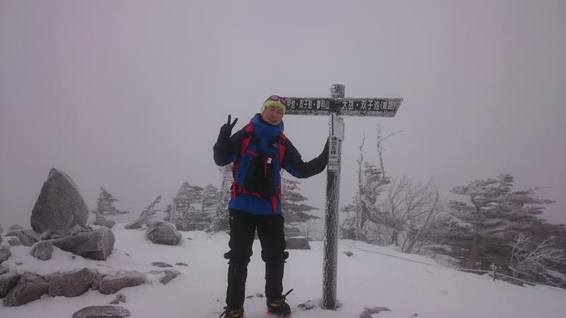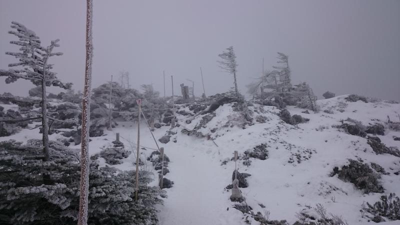山頂はガスってしまい展望はなく、風が強くて寒いので長居はできないです。