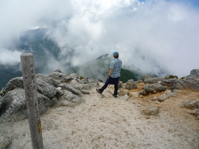 甲斐駒ケ岳山頂ではガス、お楽しみの大パノラマは一瞬しか見れませんでした。