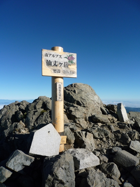 仙丈ケ岳からは、富士山、八ヶ岳、中央アルプス、北アルプスまでも一望でき