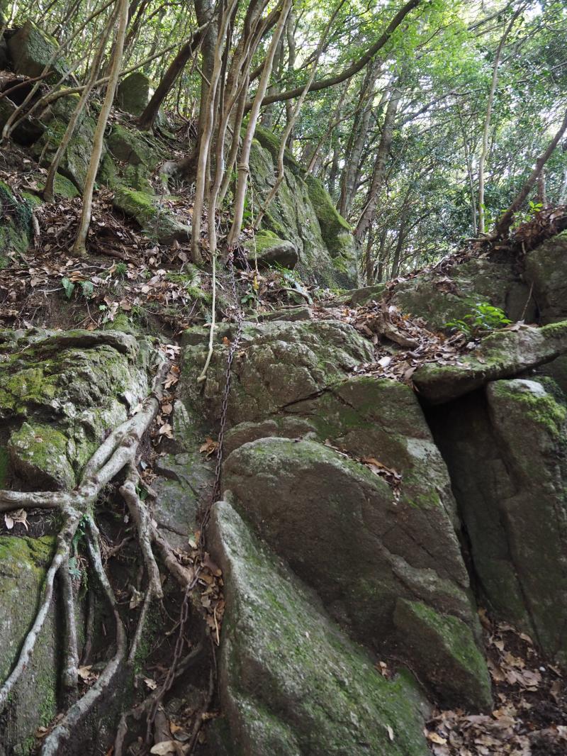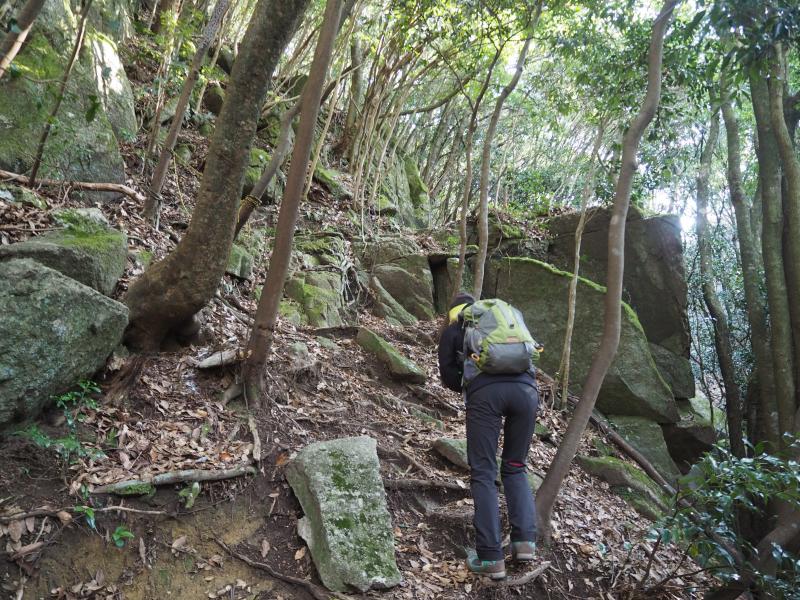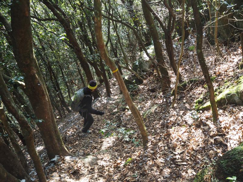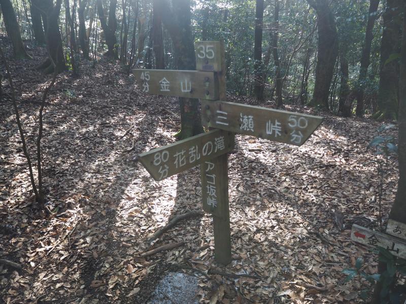 約15分で“アゴ坂峠”だ。ここが“花乱の滝”から登ってくるとぶつかる分岐。ルート上ではこの“アゴ坂峠”を起点に周遊できるので、まずは“花乱の滝”方面に下ることにした。